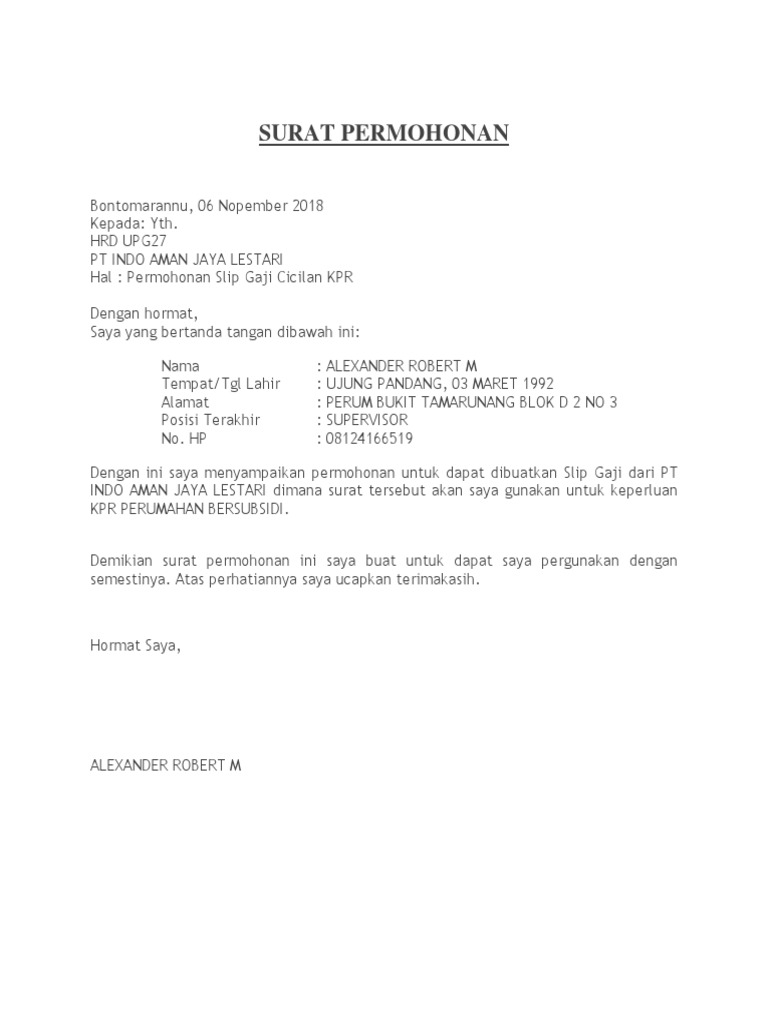 Contoh Surat Permohonan Slip Gaji Surat Permohonan Desain Contoh Surat Kdplx5wpzx